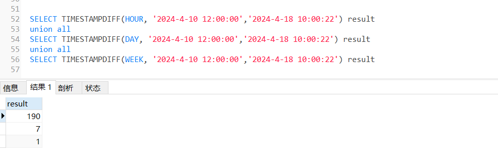 # 1.通过timestampdiff()函数计算两个日期所间隔的秒数